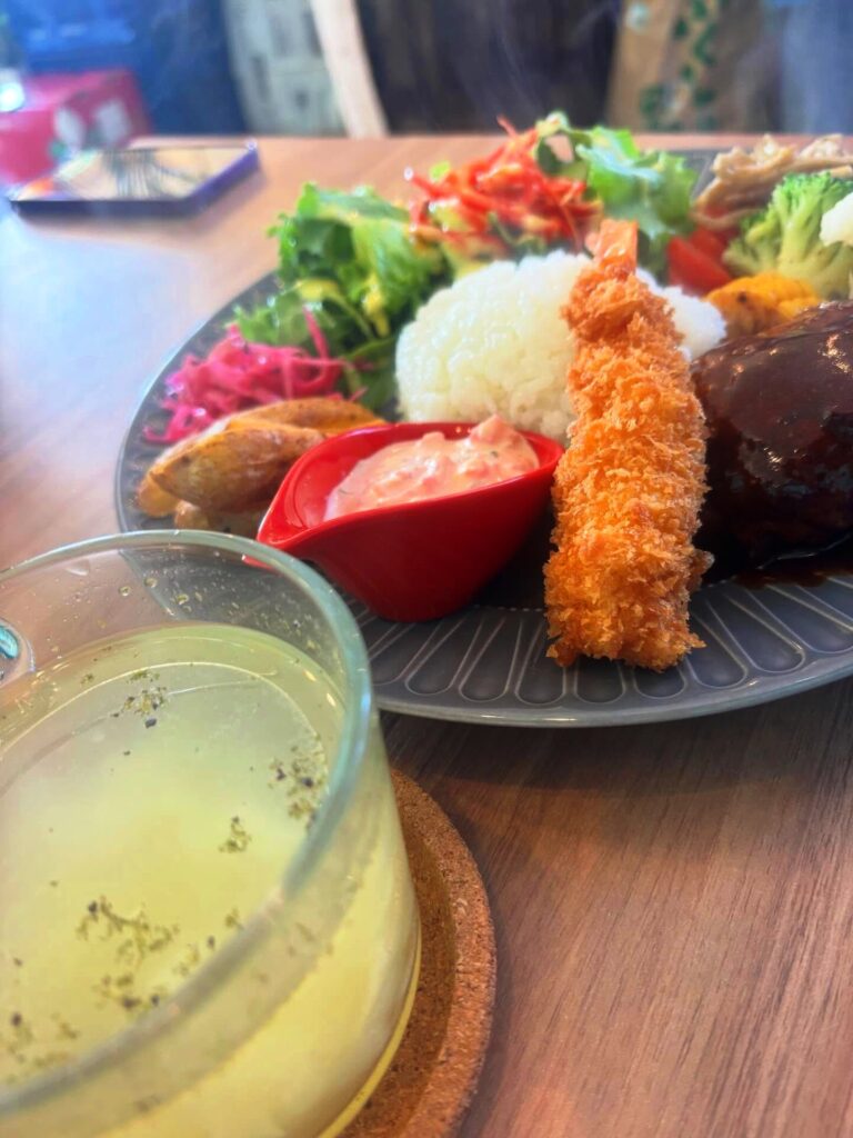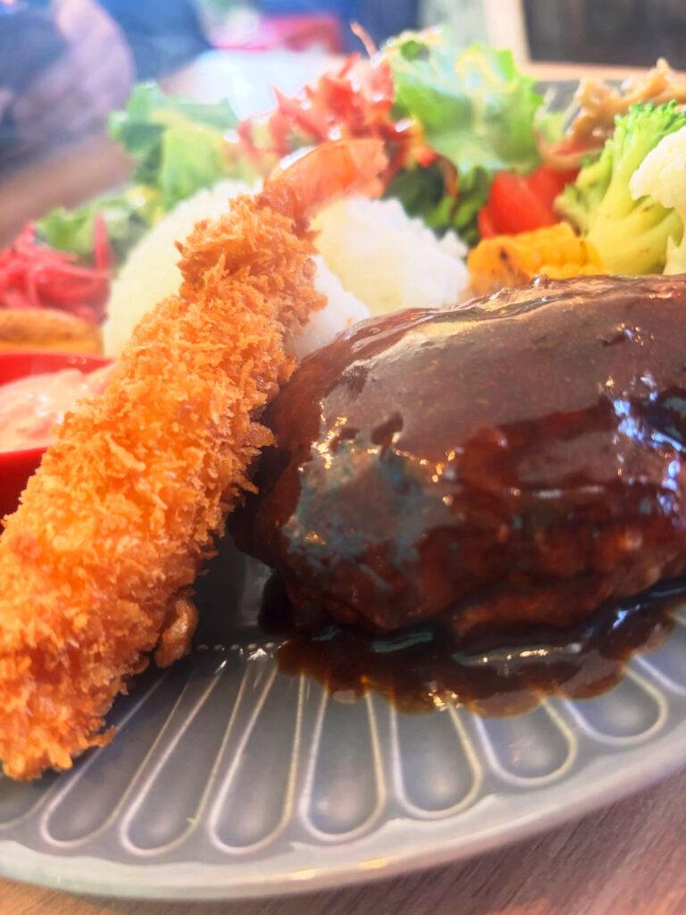 ハンバーグ&エビフライプレートを😆